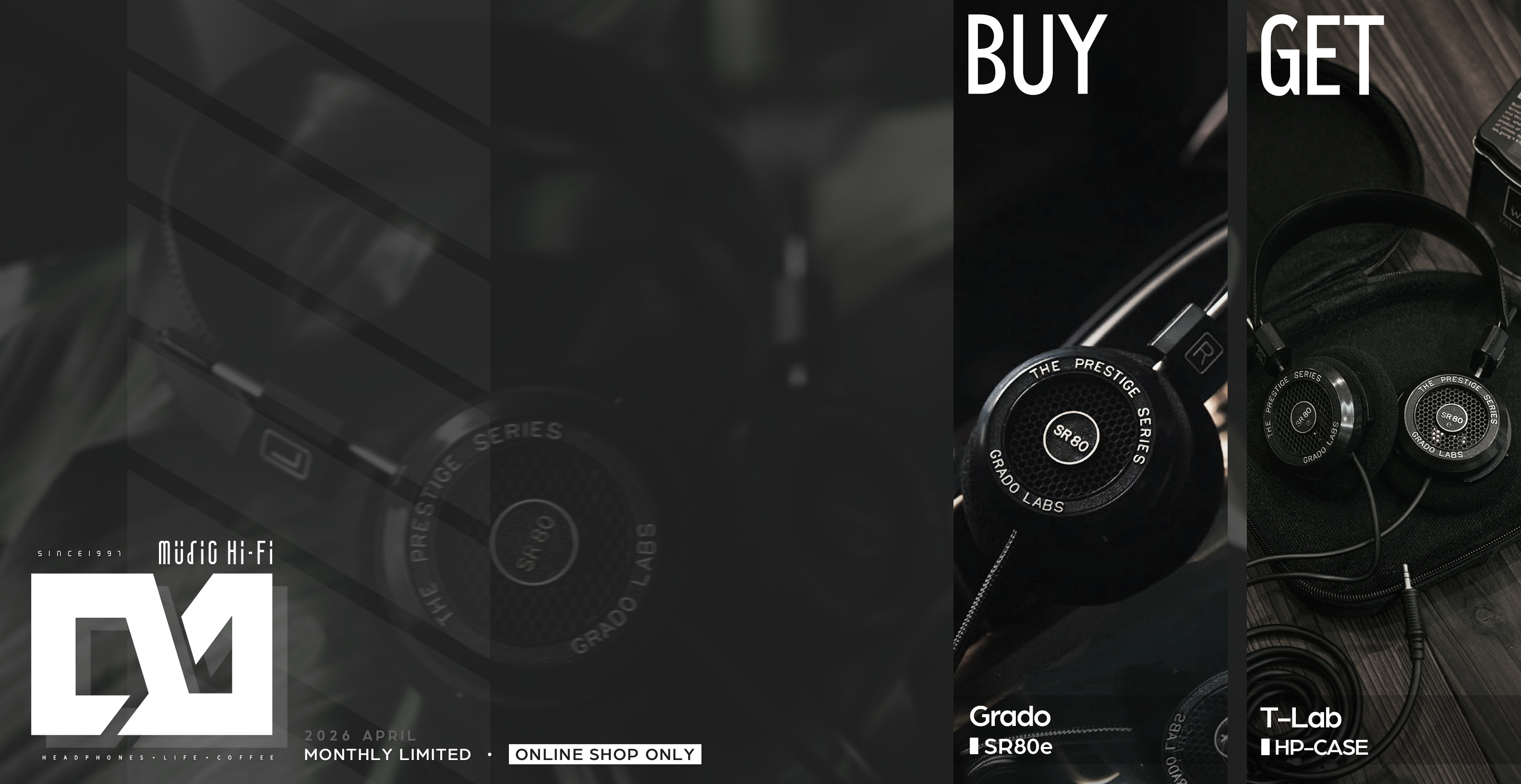 這個4月,只要上音悅音響線上商城,購買「Grado SR80e」即贈送「HP-CASE耳機盒」一個。