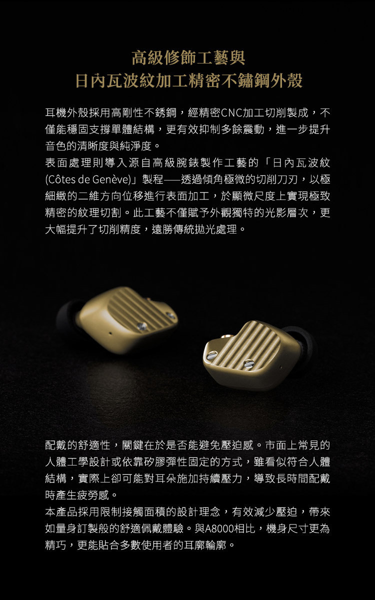 ■ 日內瓦波紋加工,精密不鏽鋼耳機腔體