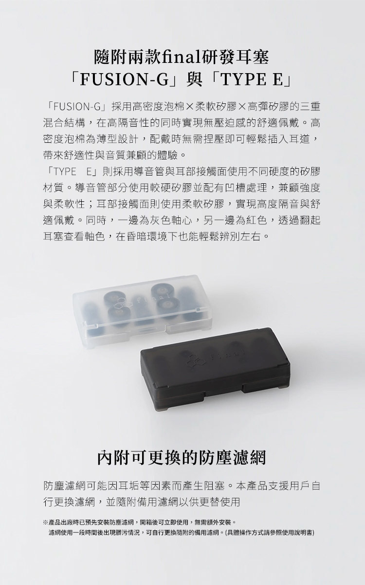 ■ 隨附兩款final耳套,FUSION-G & Type-E