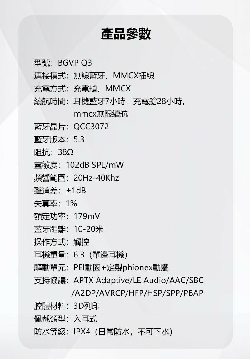 ●相容有線 MMCX 介面(不含 MMCX 電纜)。