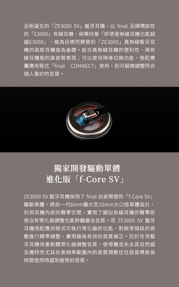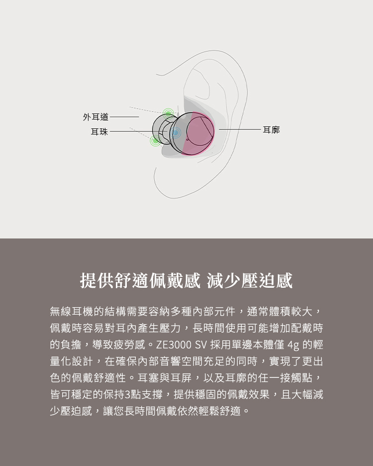 ■ 減少壓迫感,搭配final自主開發耳塞,實現舒適佩戴感