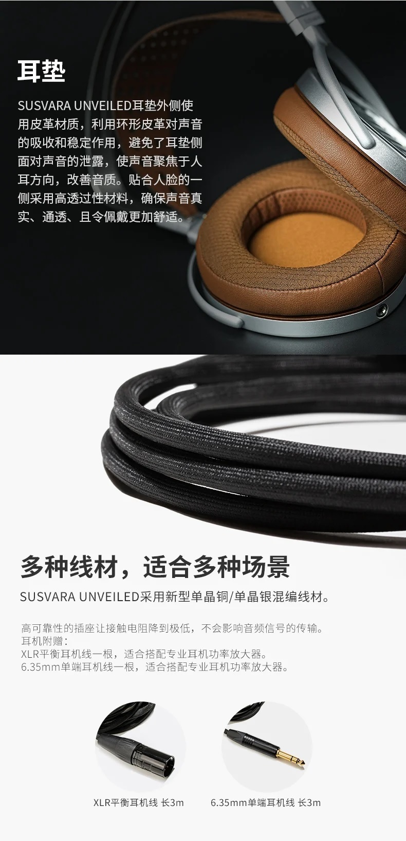 隨附新型單晶銅/單晶銀混編4PIN XLR平衡及6.3mm耳機線
