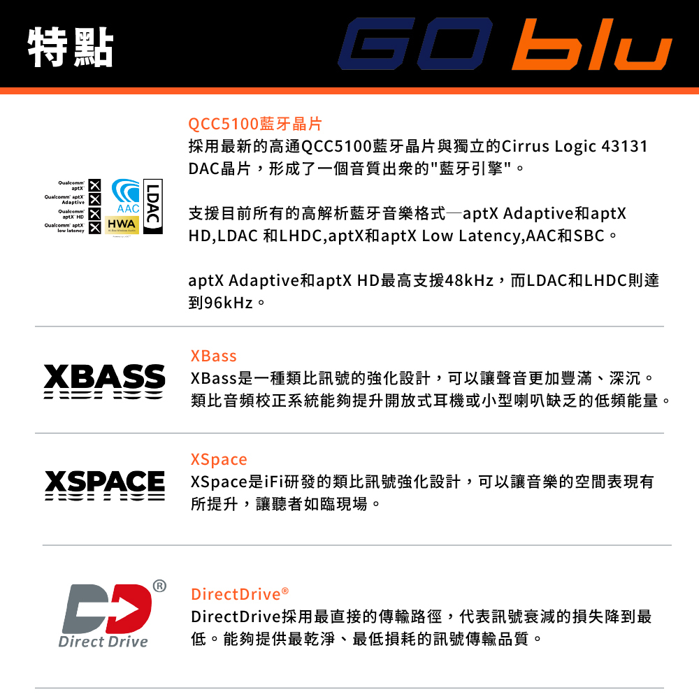 支援LDAC、aptX Adaptive、aptX HD編碼