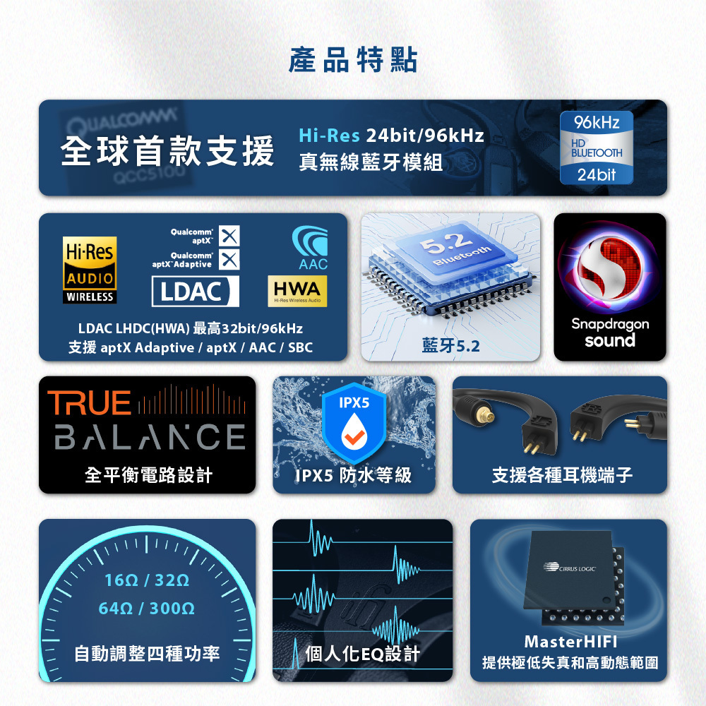 ●配備兩組可更換的IEM連接環(MMCX和0.78mm 2-pin)