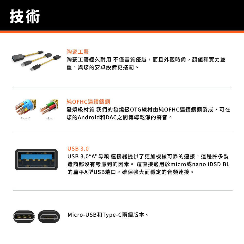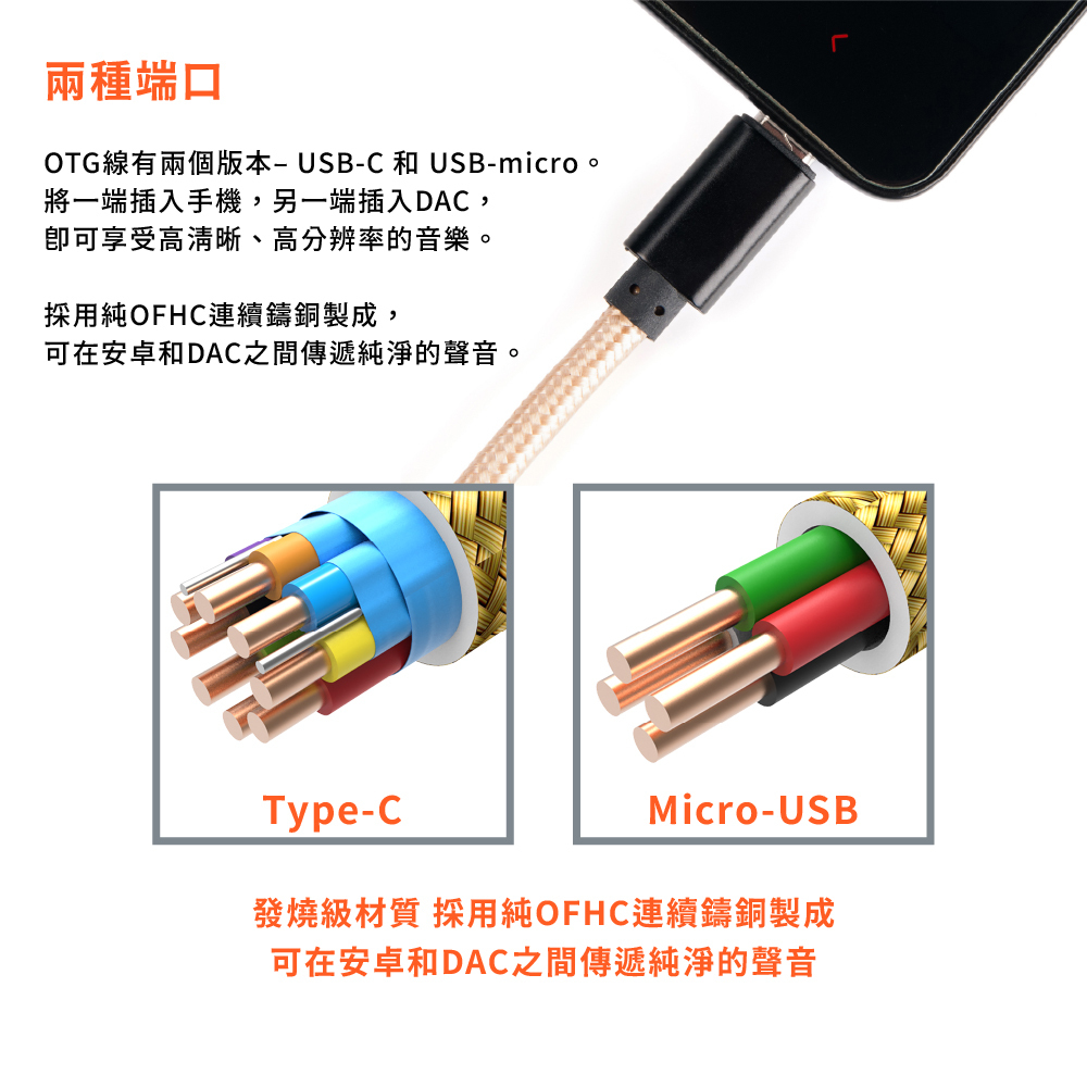 發燒級OTG電纜,由純OFHC連續鑄銅製成