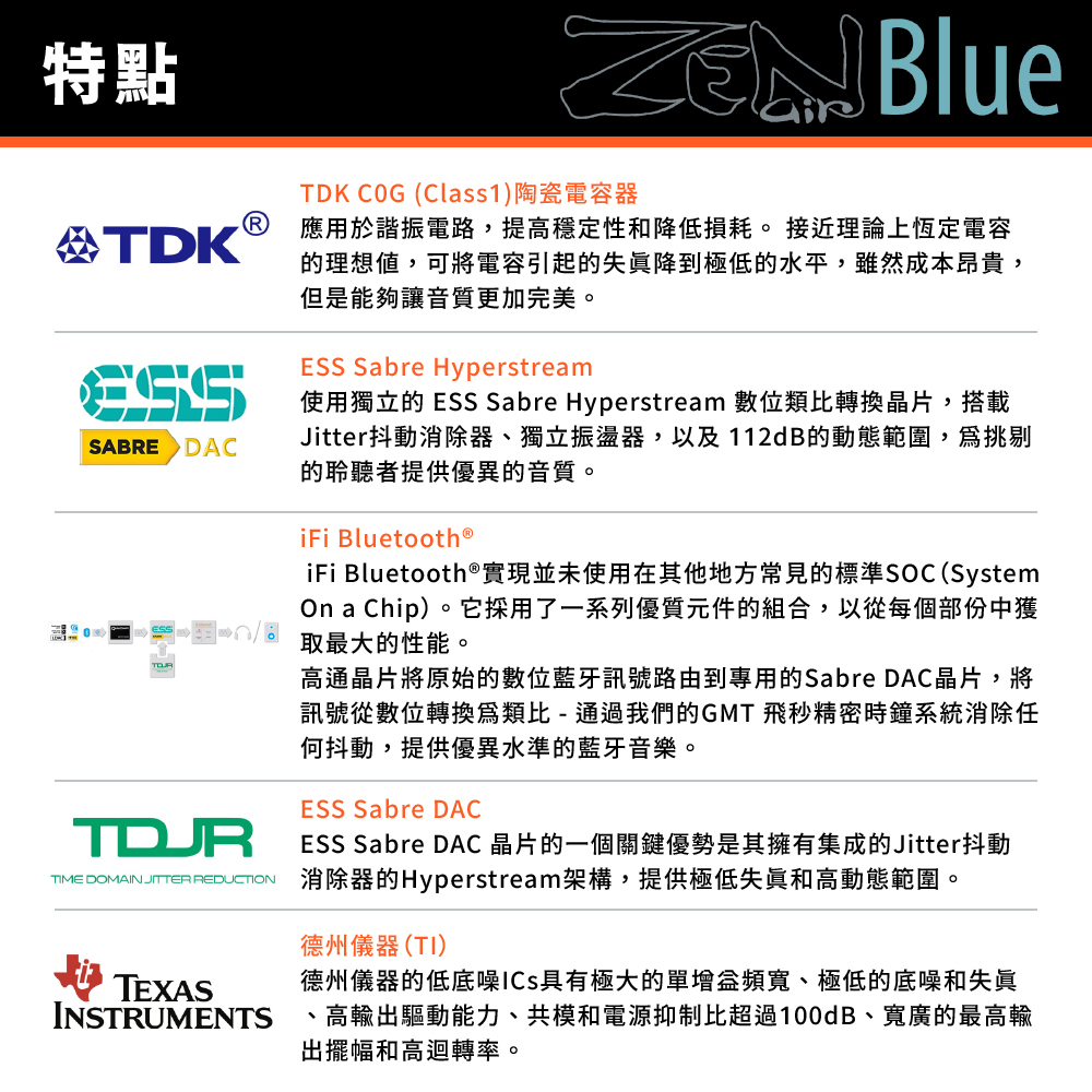 整合ESS Sabre DAC、TDK C0G等高品質元件,提供卓越音質。