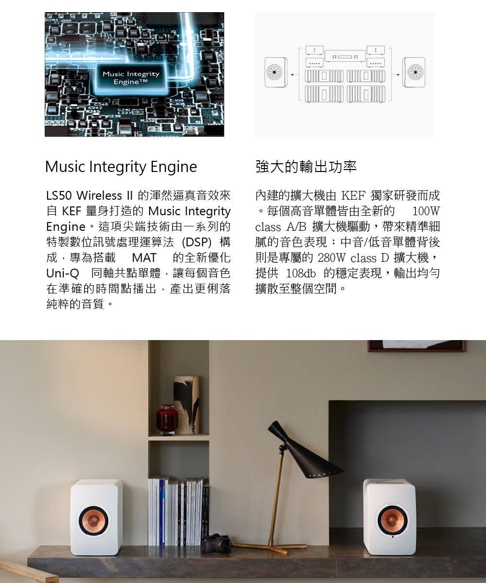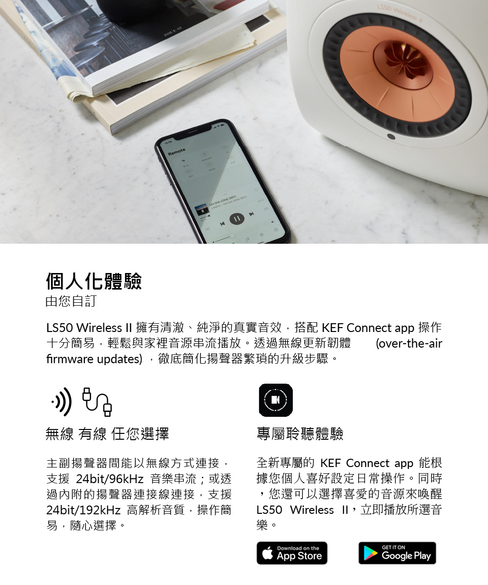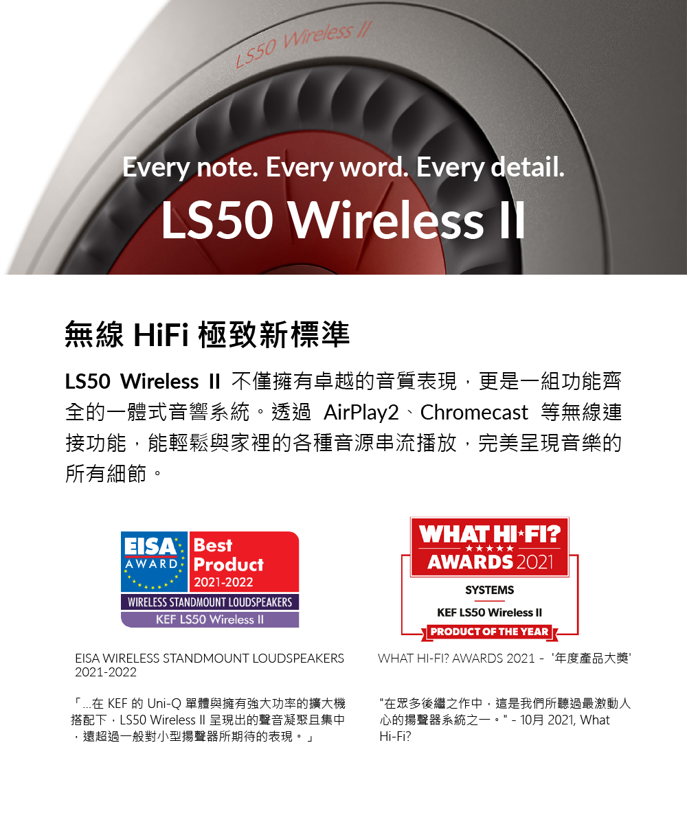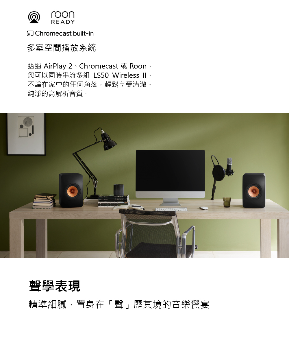 LS50 Wireless II 不僅擁有卓越的音質表現,更是一組功能齊全的一體式音響系統。透過 AirPlay2、Chromecast 等無線連接功能,能輕鬆與家裡的各種音源串流播放。另外,您也可以選擇以有線方式與電視、遊戲主機、黑膠唱片機連接。從此享受極致音色變得更輕易自在,不受束縛。