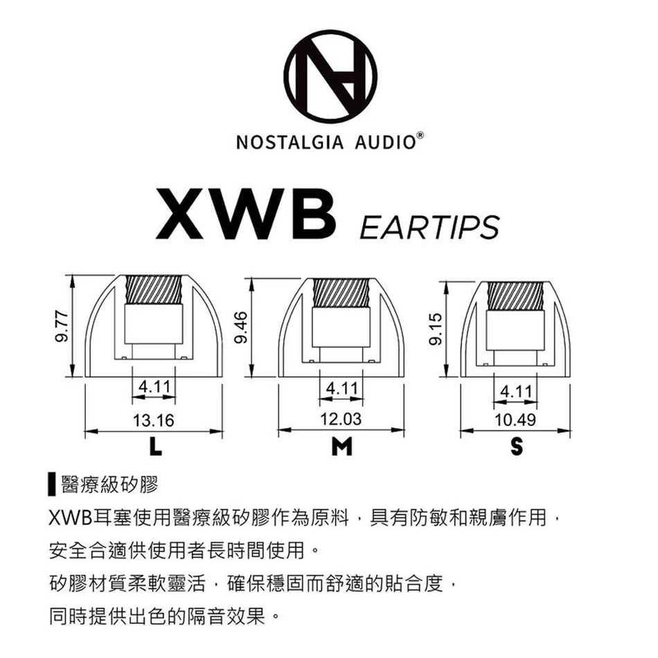 XWB耳塞是一款為了迎合當下流行的大直徑出音管入耳式耳機而設計的耳膠。