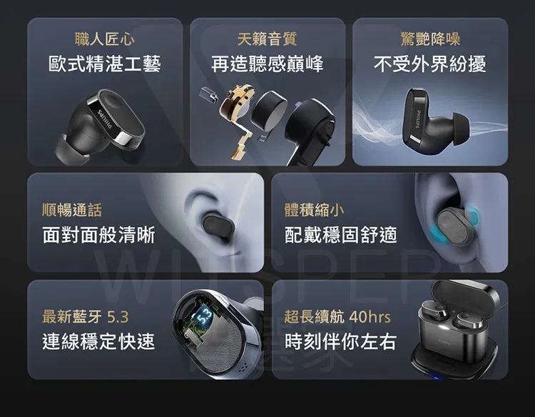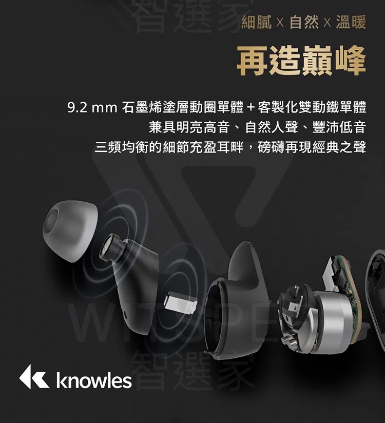 ■ 9.2mm石墨烯塗層動圈結合動鐵,由飛利浦獨家金耳朵聲學團隊操刀調校,讓圈鐵單元帶出溫暖動人的聲音風格,三頻均衡的細節充盈耳畔,磅礴再現經典之聲