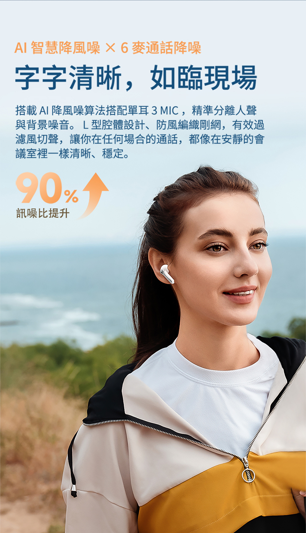 ■ -55dB AI自適應降躁 + AI智慧抗風躁