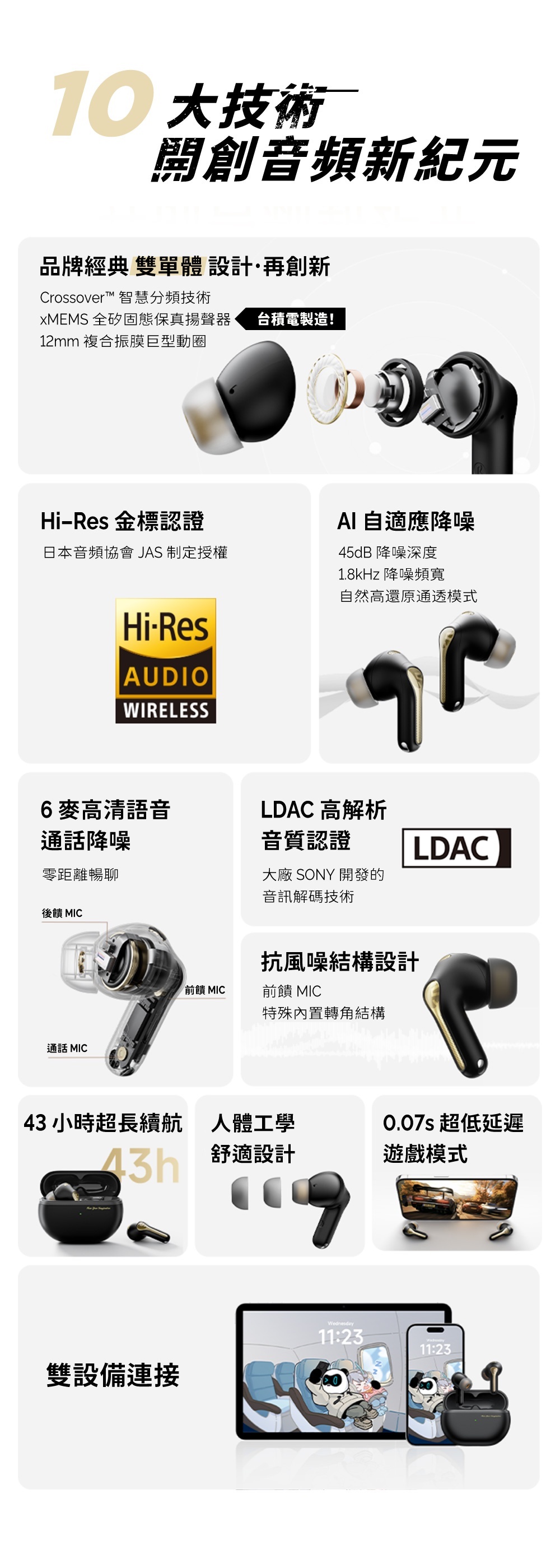 ■ 搭載台積電製造xMEMS全矽固態保真揚聲器。