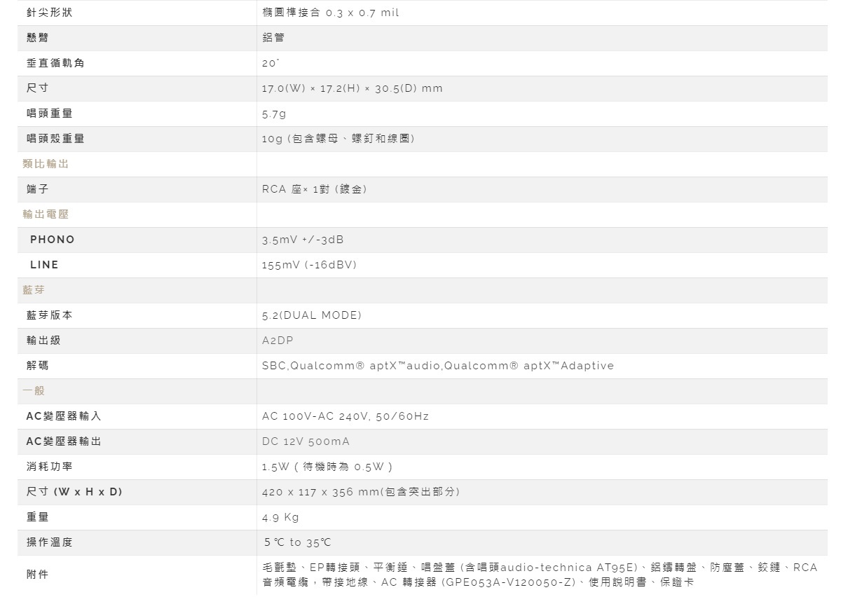 TN-400BT-X 是內建 Phono EQ 唱頭放大器的黑膠唱盤,同時允許用戶透過藍芽 Qualcomm® aptX™ 傳輸音樂訊號到耳機和揚聲器,以無線方式聆聽黑膠唱片,壓鑄鋁盤能提供精確的轉速,另外S形靜態平衡鋁製唱臂提供精確的播放。內建 Phono EQ 唱頭放大器,使 TN-400BT-X 可以連接到常規的 Hi-Fi 擴大機或小型 Hi-Fi,而通用型唱頭蓋讓用戶能輕鬆更換唱頭。